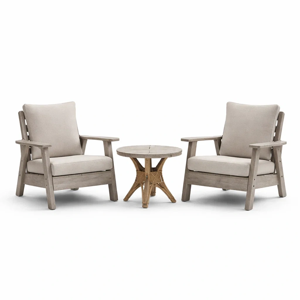 Ensemble de détente salon extérieur en bois avec fauteuils et table