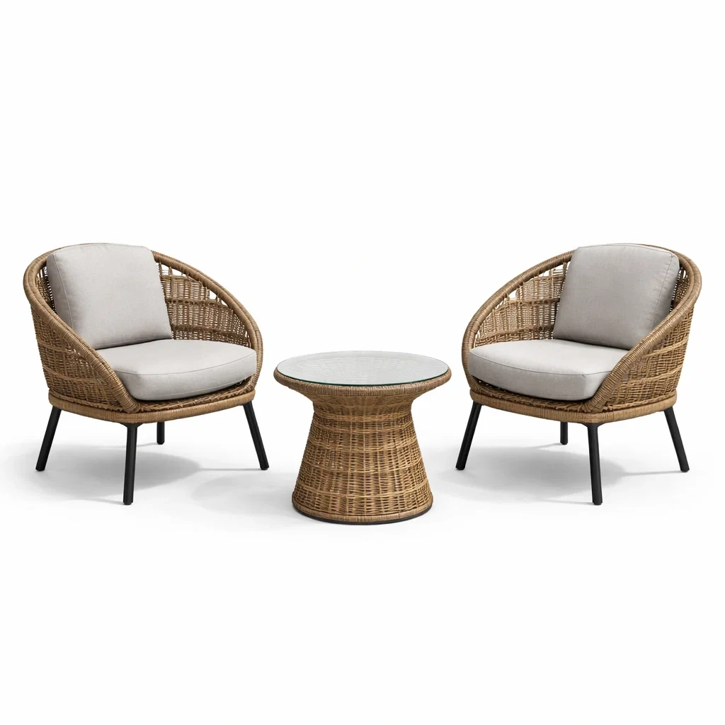 Ensemble de détente salon de jardin en rotin avec table en verre