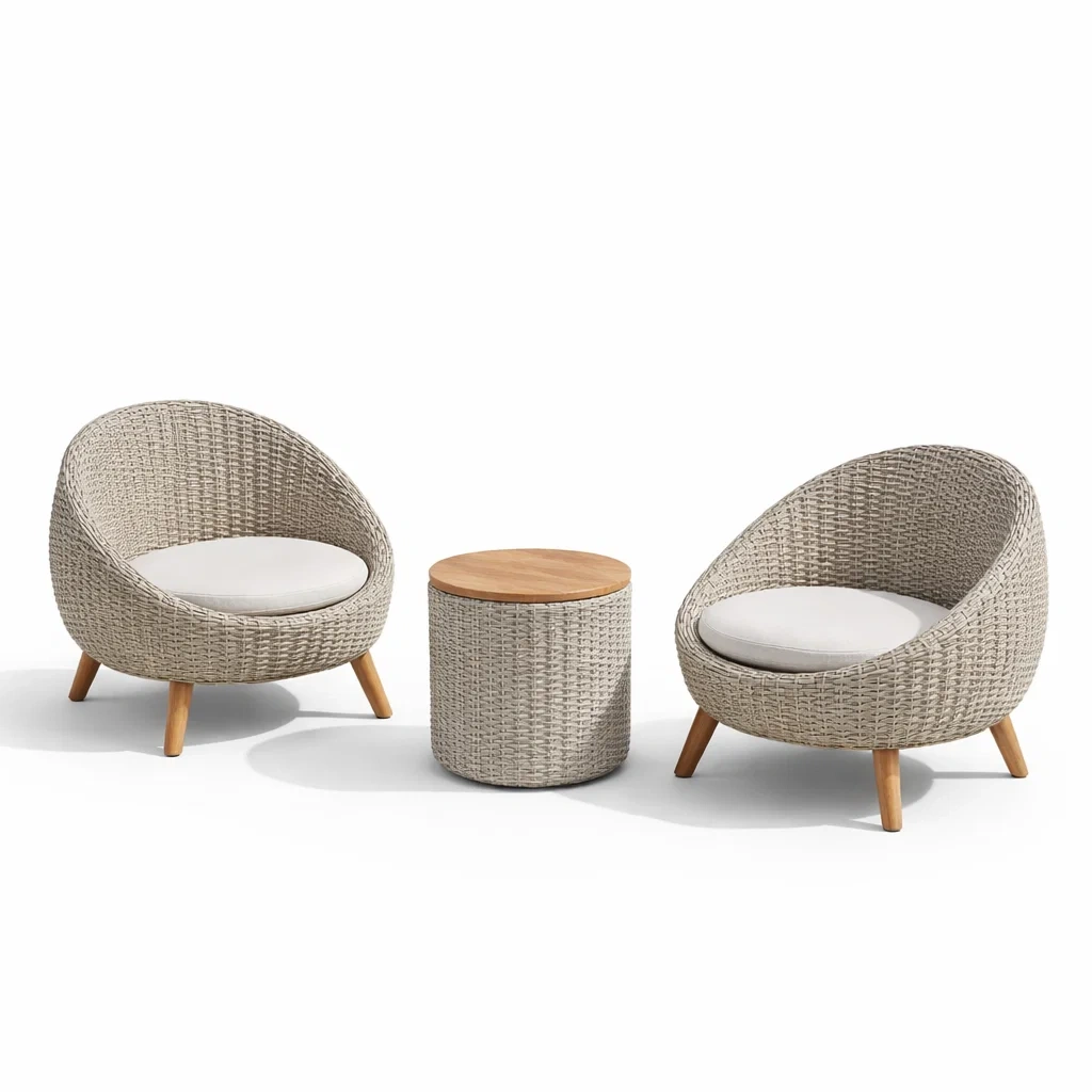Ensemble de détente mobilier extérieur en résine tressée beige et bois